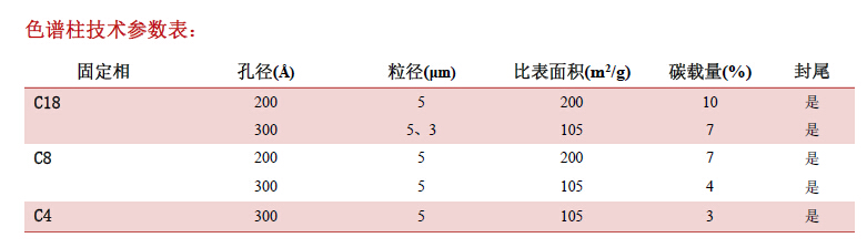 其在純水溶液中不會崩解。提供200 ?和300 ?兩種大孔徑規(guī)格,結(jié)合多種固定相選擇(C18、
