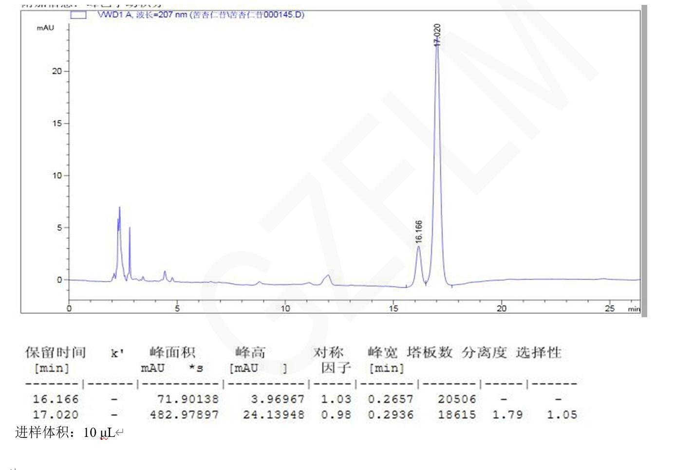 進(jìn)樣體積:10 μL