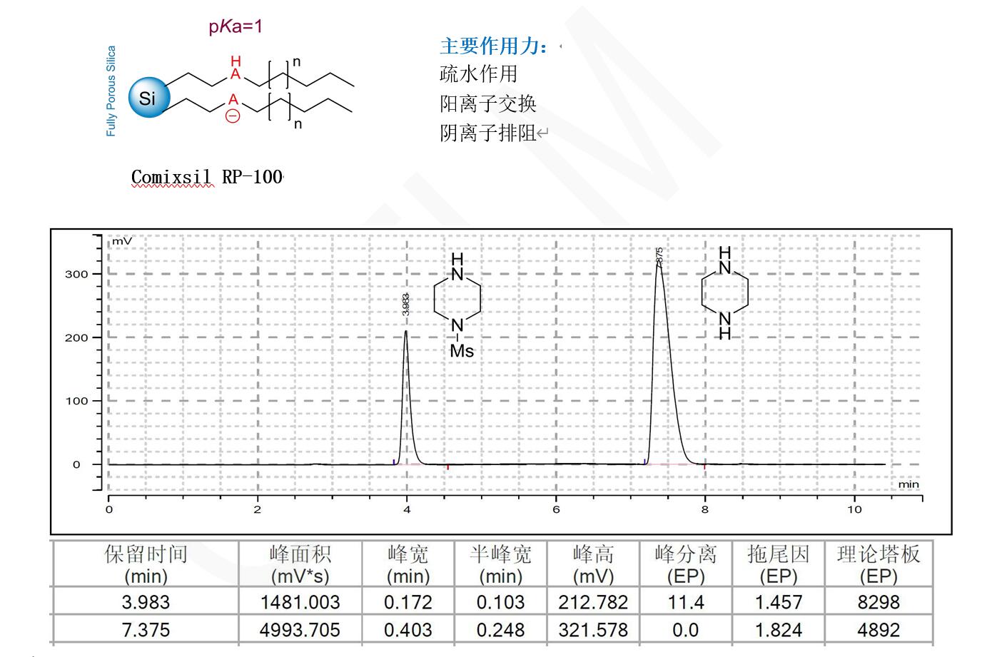 Comixsil RP-100 混合模式分離哌嗪和 1-(甲磺酰基)哌嗪