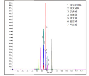 2、 大米中農(nóng)藥多殘留檢測(cè)色譜圖